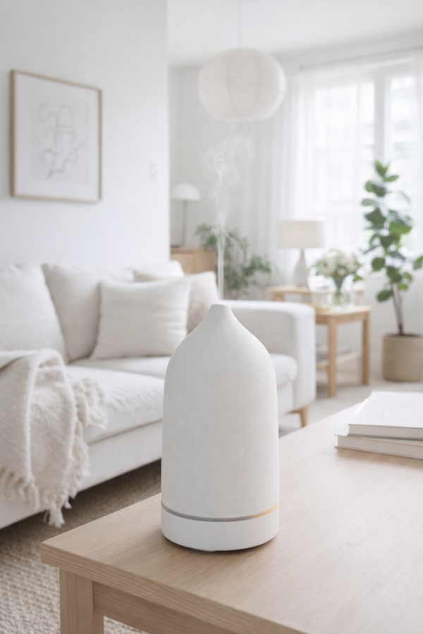 Amfora to ceramiczny dyfuzor zapachowy, który łączy estetyczny, minimalistyczny wygląd z wygodnym użytkowaniem na co dzień. Dzięki technologii ultradźwiękowej rozprasza wodę z dodatkiem olejków eterycznych w postaci delikatnej mgiełki, pomagając stworzyć przyjemną atmosferę w domu, sypialni, gabinecie lub miejscu pracy.