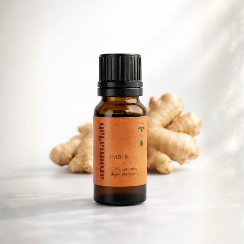 Zapach olejku imbirowego jest wyraźnie rozgrzewający, suchy, przyprawowy, świeżo-korzenny, z delikatnie cytrusowym i lekko drzewnym tłem. To aromat, który dobrze buduje kompozycje jesienno-zimowe, łączy się z olejkami cytrusowymi, kadzidłowymi, drzewnymi i przyprawowymi, a w dyfuzji pomaga tworzyć atmosferę komfortu, energii i otulenia. Charakter zapachowy imbiru wynika z przewagi seskwiterpenów i monoterpenów obecnych w olejku.